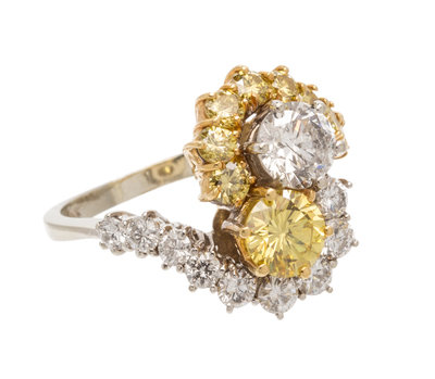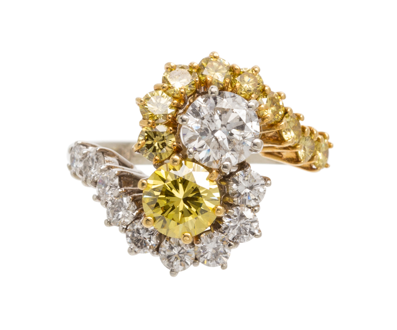 An 18 Karat Gold, Diamond and Treated Color Diamond Bypass Ring,