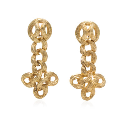 A Pair of 14 Karat Yellow Gold Knot Motif Pendant Earclips,