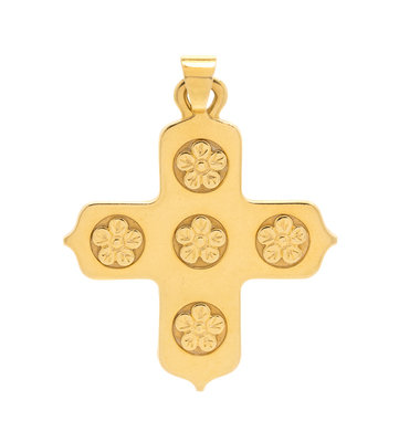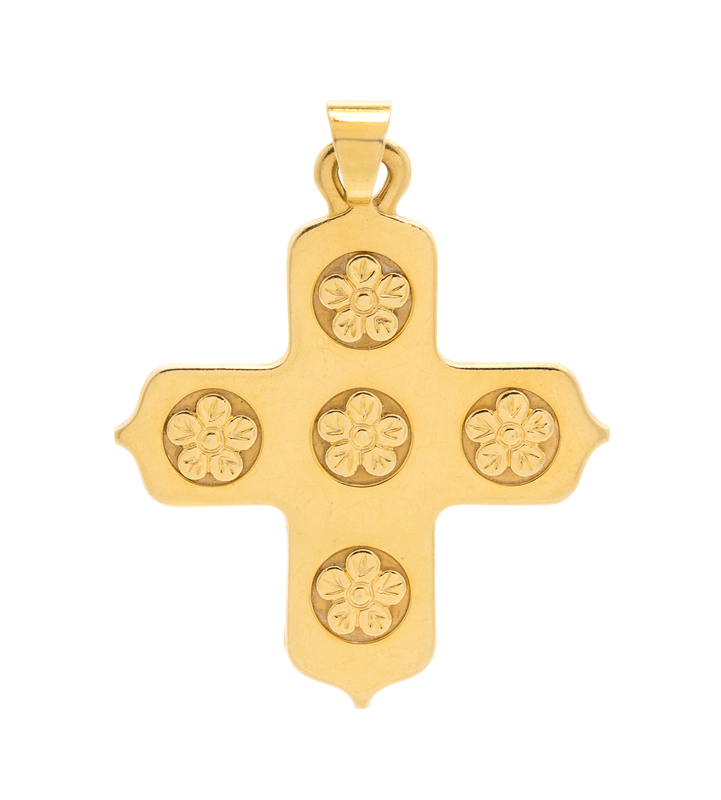 accented with embossed floral designs. Stamp: JA (maker's mark) 14K.
