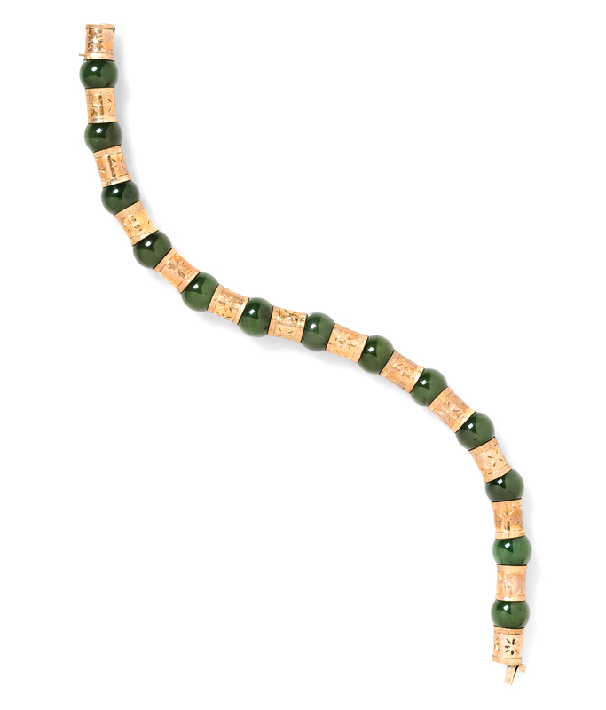 A 14 Karat Yellow Gold and Nephrite Jade Bracelet,