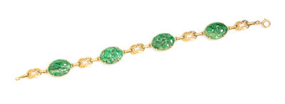 A 14 Karat Yellow Gold and Jade Bracelet,