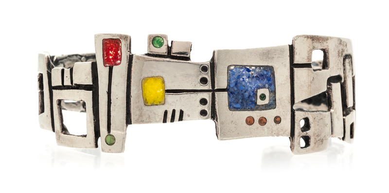 A Modernist Sterling Silver and Polychrome Enamel Cuff Bracelet,