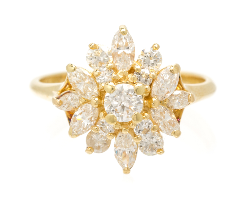 An 18 Karat Yellow Gold and Diamond Ring,