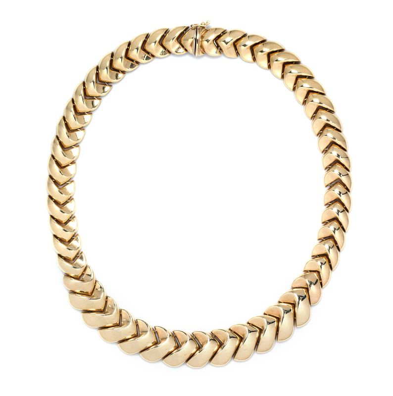 in a repeating chevron design.Stamp: 14K Italy.