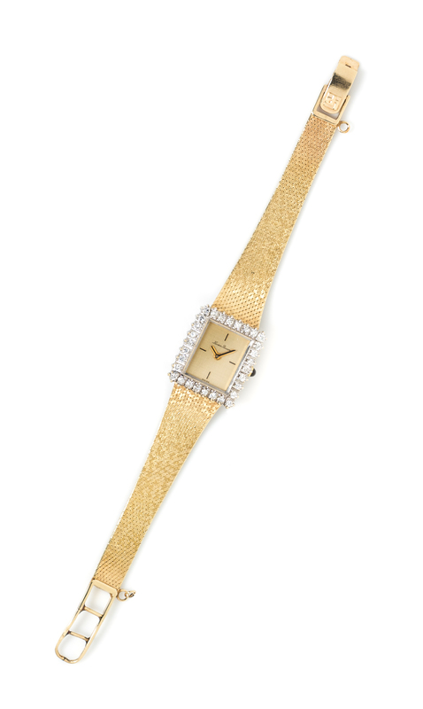 A 14 Karat Yellow Gold and Diamond Watch, Lucien Piccard,