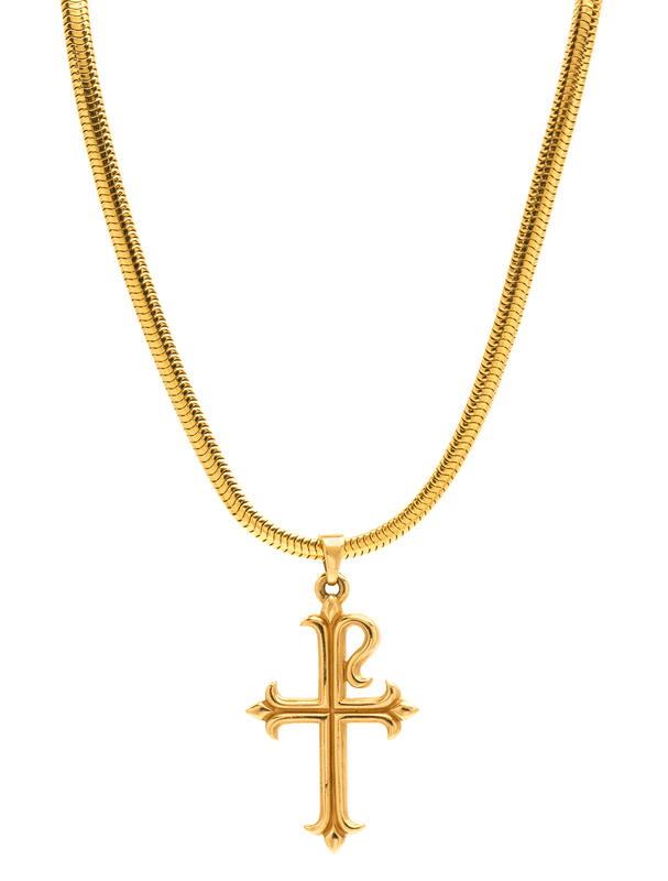 An 18 Karat Yellow Gold Snake Chain Necklace with Cross Pendant,