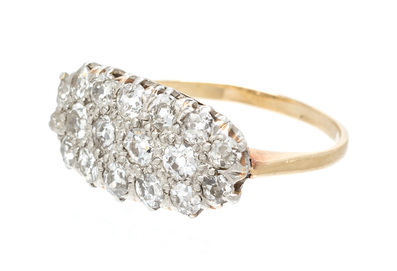 An Edwardian Platinum Topped Yellow Gold and Diamond Cluster Ring,