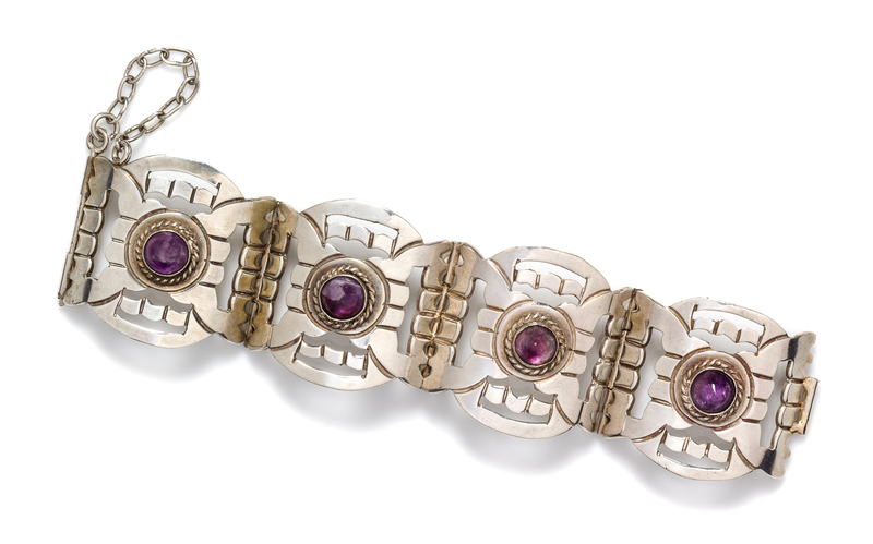 A 980 Silver and Amethyst Bracelet, Taxco,