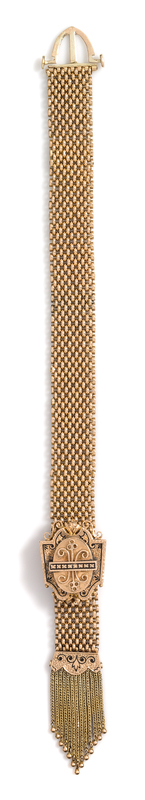 A Victorian Gold and Enamel Slide Tassel Bracelet,