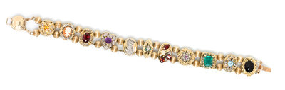 A 10 Karat Yellow Gold and Gemstone Slide Bracelet,