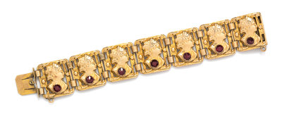 A Yellow Gold and Garnet Bracelet,