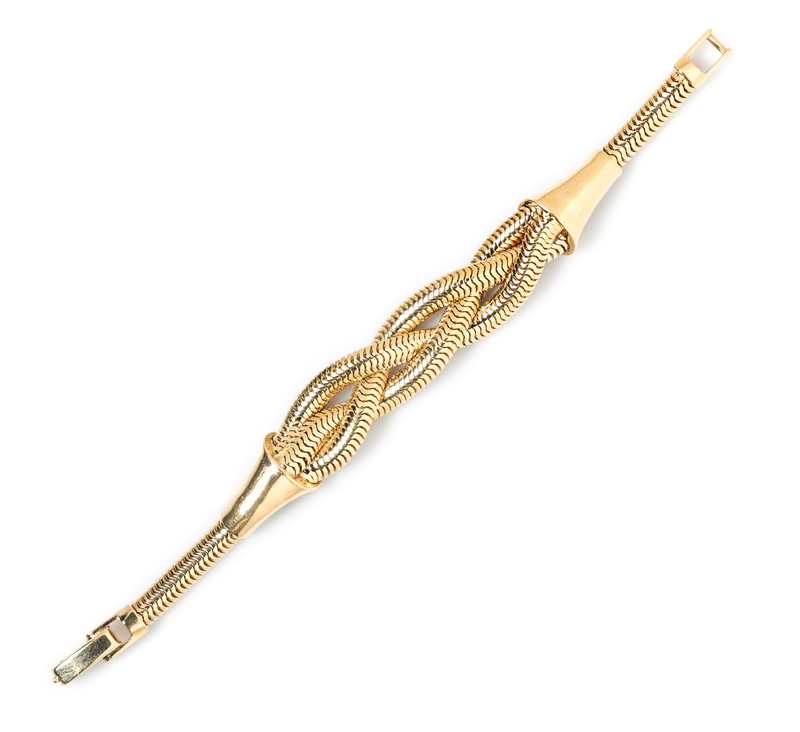 A Retro 14 Karat Yellow Gold Braided Snake Chain Bracelet,