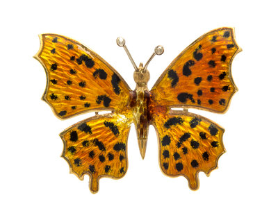 An 18 Karat Yellow Gold and Polychrome Enamel Butterfly Brooch,