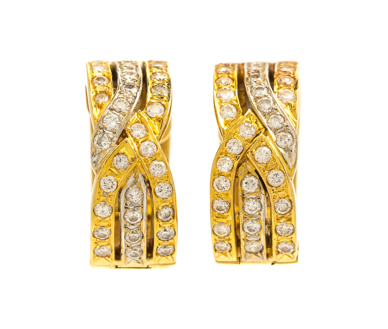 A Pair of 18 Karat Gold and Diamond Hoop Earrings,