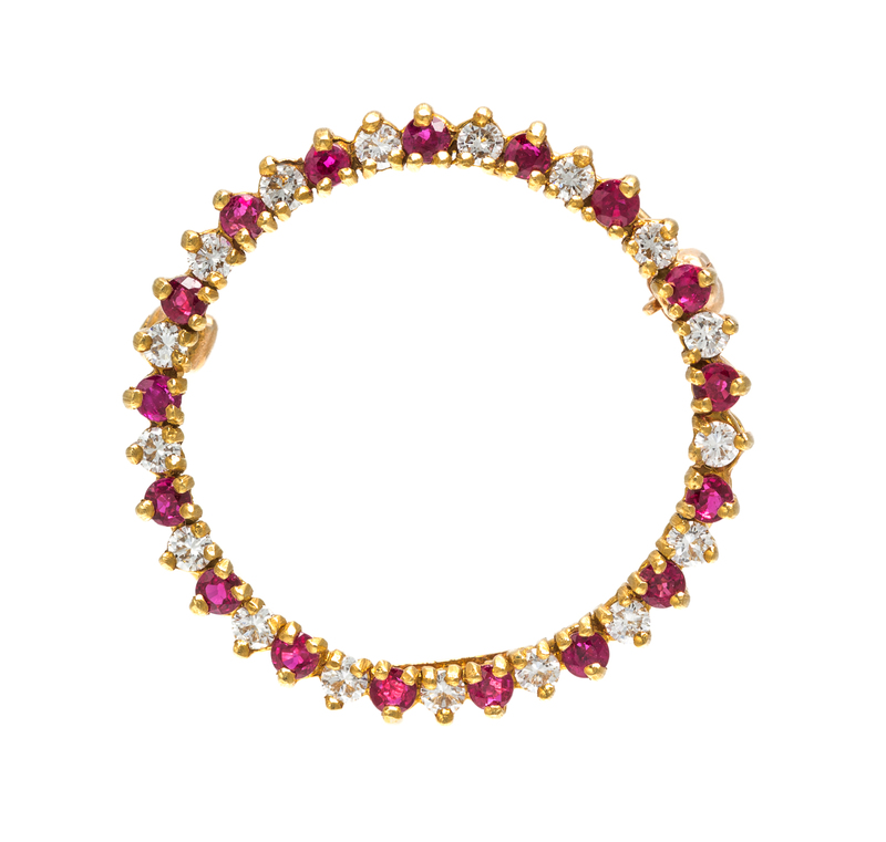 An 18 Karat Yellow Gold, Ruby and Diamond Circle Pendant/Brooch,