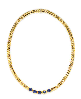 consisting of a central curved group of bezel settings containing five oval cabochon cut sapphires weighing approximately 4.80 carats total suspended between a curb link chain.Stamp: FRED PARIS 750 (Italian maker's mark 23 VR) (French maker's mark) (French import marks).