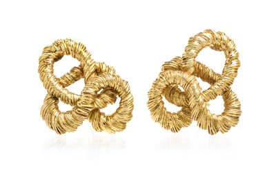 in a knotted rope motif.Stamp: 14K PM.