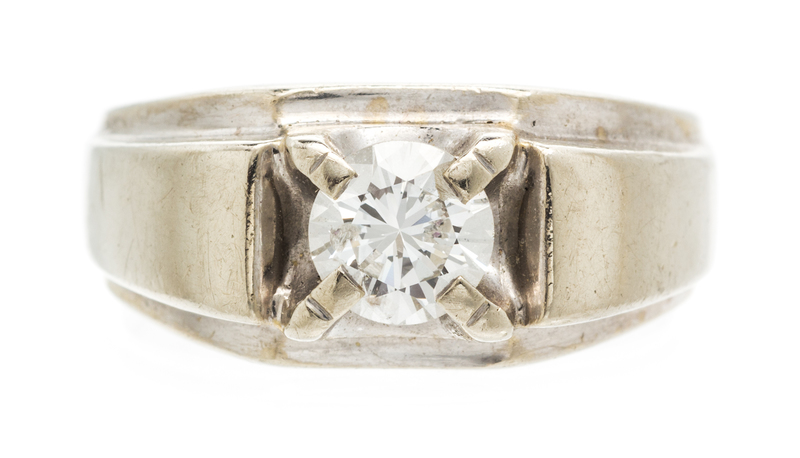 containing one transitional cut diamond weighing approximately 0.98 carat.Stamp: 14K.