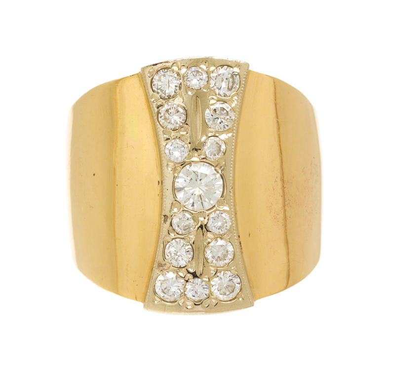 containing one round brilliant cut diamond weighing approximately 0.21 carat and 14 round brilliant cut diamonds weighing approximately 0.60 carat total.