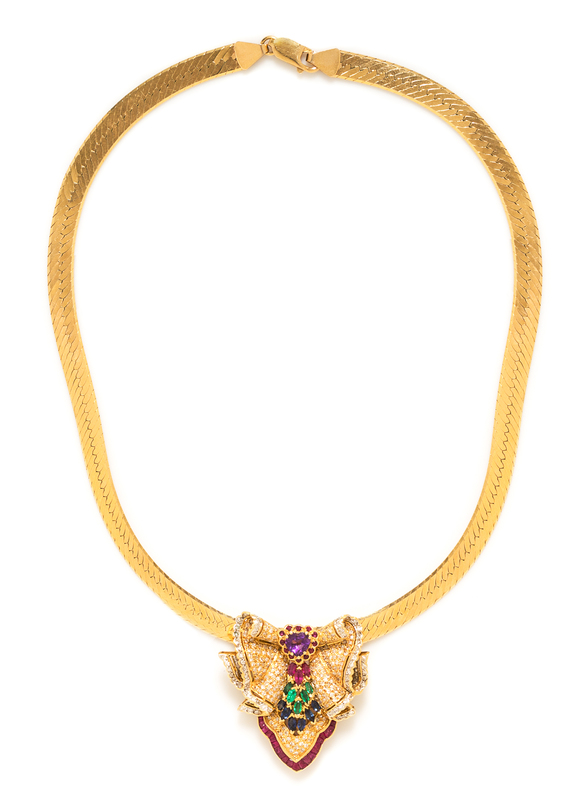 A Yellow Gold, Diamond and Multigem Slide/Enhancer,