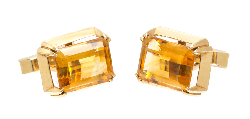 A Pair of 14 Karat Yellow Gold and Citrine Cufflinks,