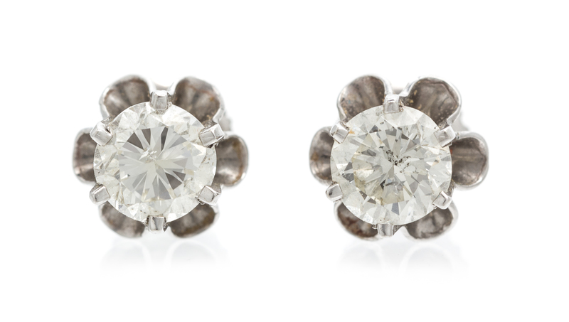 containing two round brilliant cut diamonds weighing approximately 0.90 carat total.