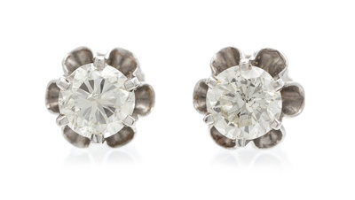 A Pair of White Gold and Diamond Stud Earrings,