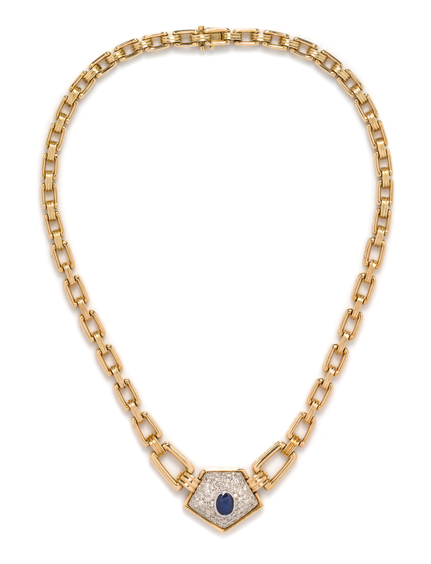 A 14 Karat Yellow Gold, Sapphire and Diamond Necklace,