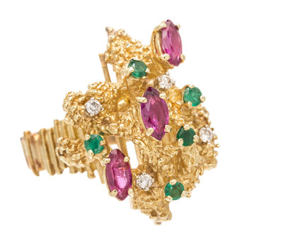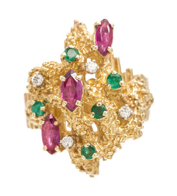 A Yellow Gold, Ruby, Emerald and Diamond Ring,