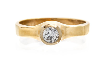 A Modernist 14 Karat Yellow Gold and Diamond Ring, Bent Gabrielsen Pedersen,