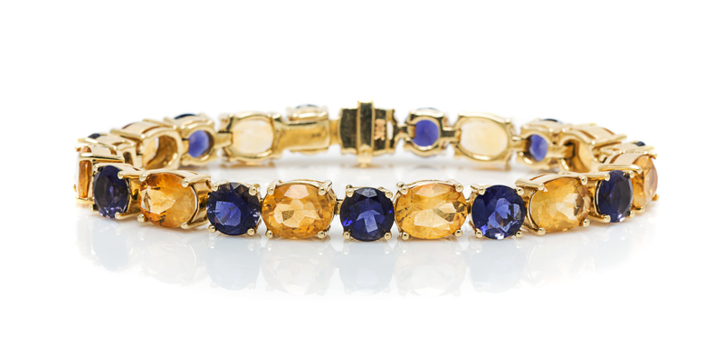 A 14 Karat Yellow Gold, Iolite and Citrine Line Bracelet,