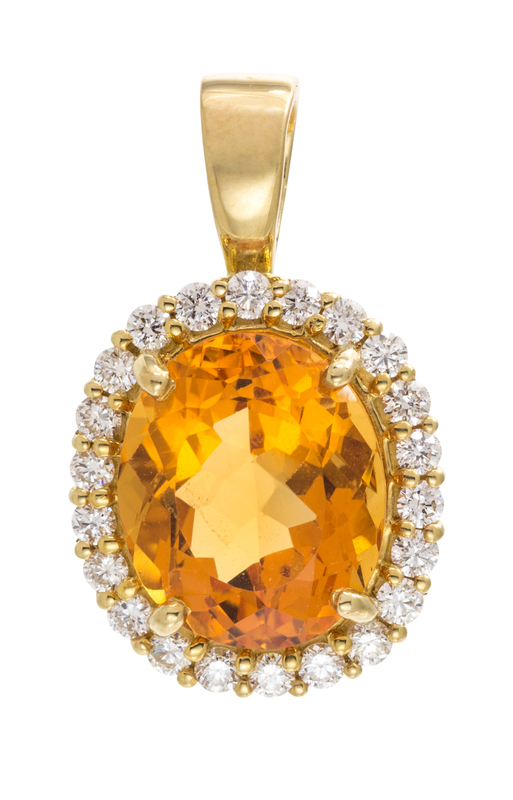 An 18 Karat Yellow Gold, Citrine and Diamond Pendant,