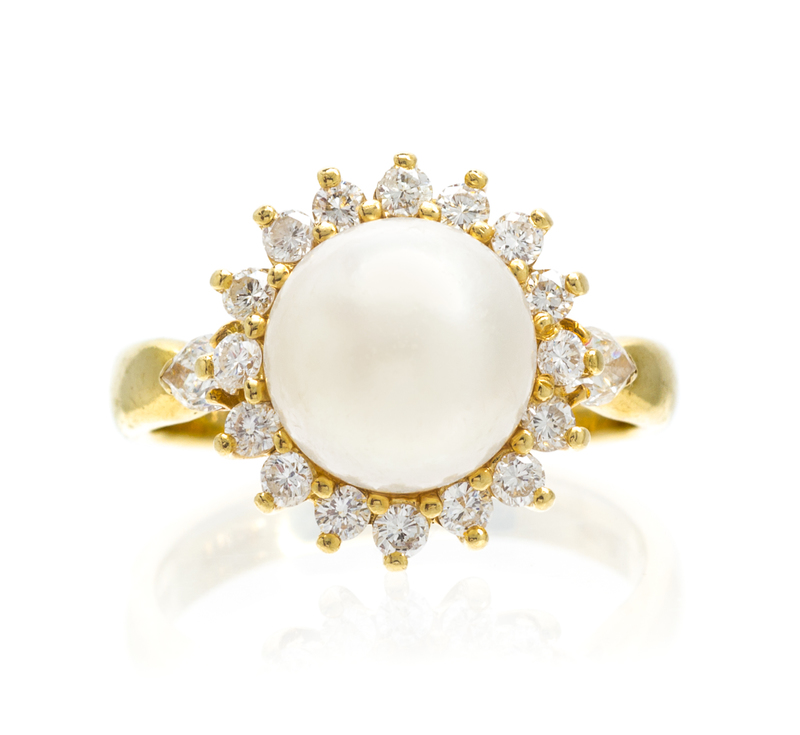 An 18 Karat Yellow Gold, Cultured Pearl and Diamond Ring,
