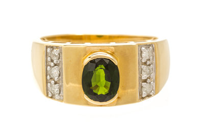 A 14 Karat Yellow Gold, Tourmaline and Diamond Ring,