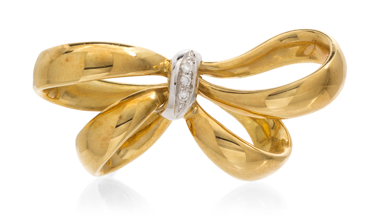 An 18 Karat Two Tone Gold and Diamond Bow Brooch,