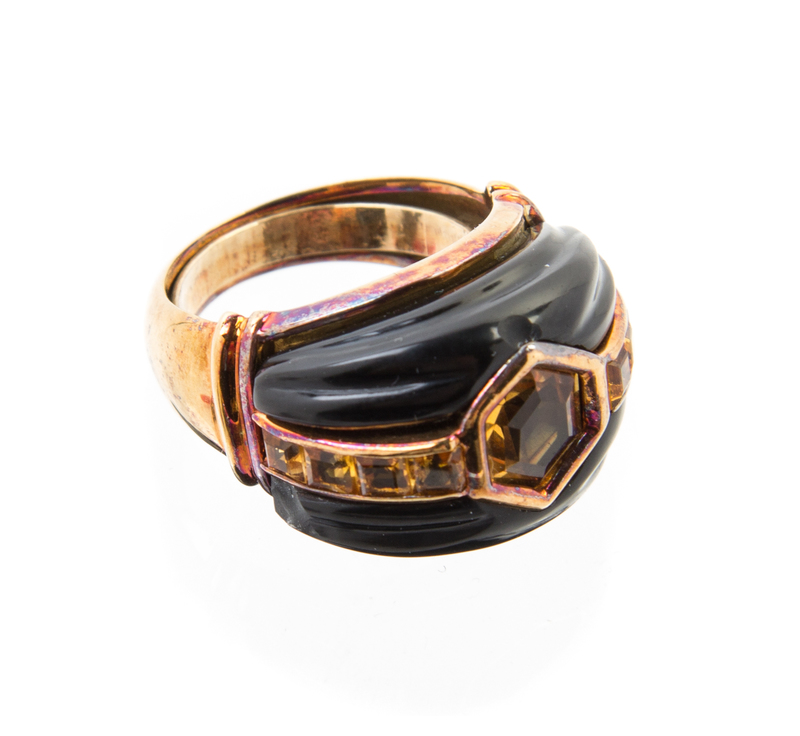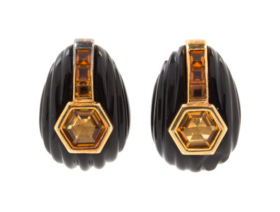 A Collection of 14 Karat Yellow Gold, Onyx and Citrine Jewelry,