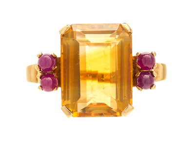 A Retro Yellow Gold, Citrine and Ruby Ring,
