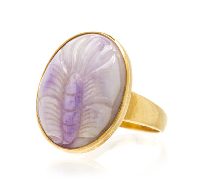 A 14 Karat Yellow Gold and Lavender Jade Ring,