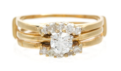 A Yellow Gold and Diamond Ring Set,