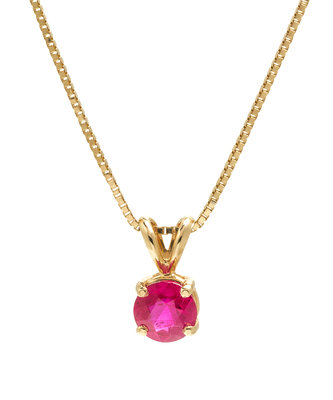 containing one round mixed cut ruby measuring approximately 6.42 x 6.40 x 3.76 mm and weighing approximately 1.24 carats, suspended from a 14 karat yellow gold box chain.Chain stamp: ALAD 14K ITALY.