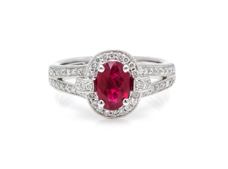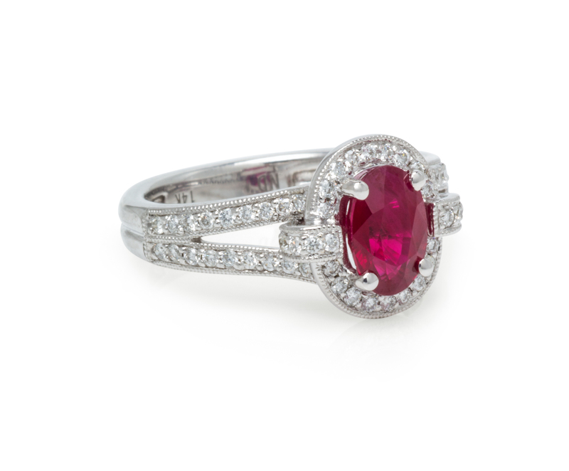 A 14 Karat White Gold, Ruby and Diamond Ring,