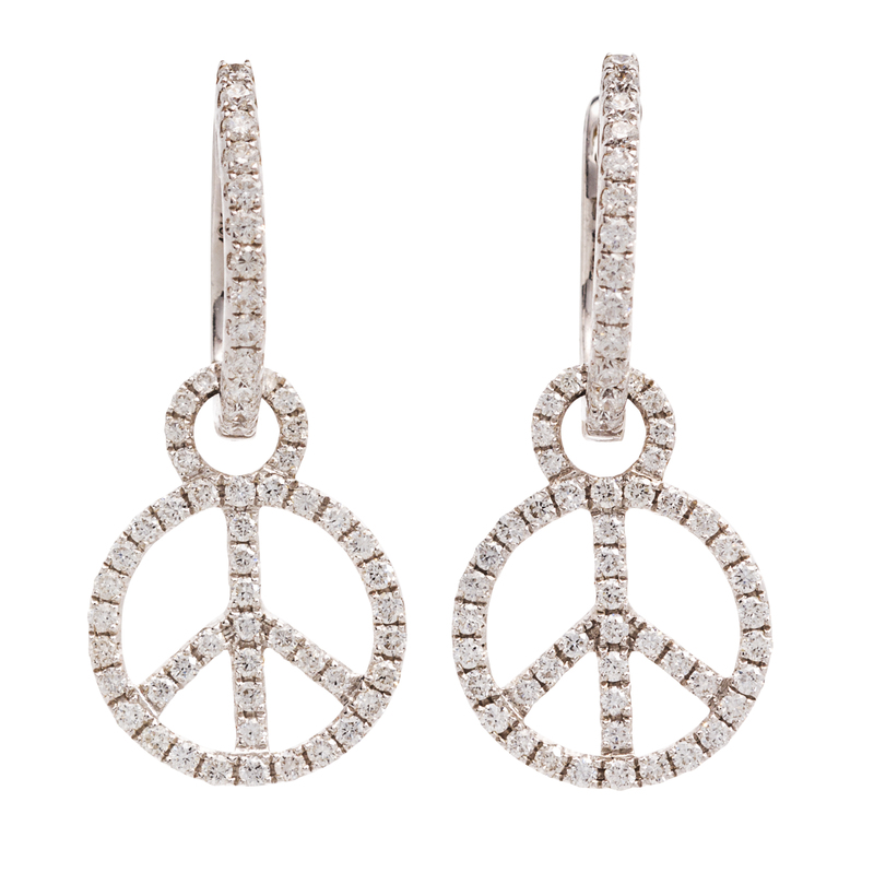 A Pair of 18 Karat White Gold and Diamond Peace Sign Motif Earrings,