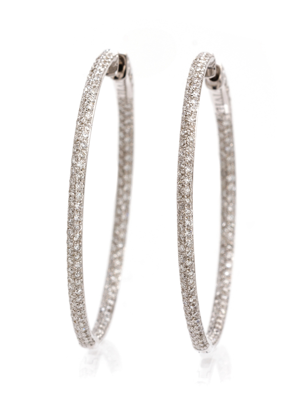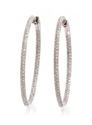 A Pair of 18 Karat White Gold and Diamond Hoop Earrings,