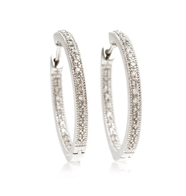 A Pair of 14 Karat White Gold and Diamond Inside Out Hoop Earrings,