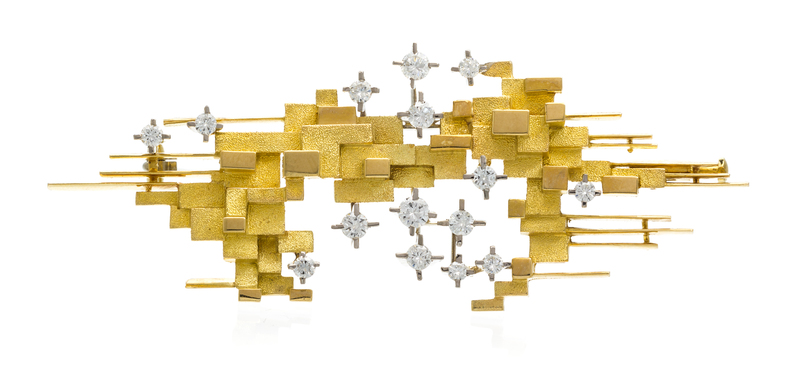 A Modernist 18 Karat Gold and Diamond Brooch, Swiss,