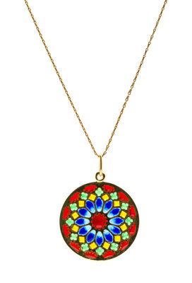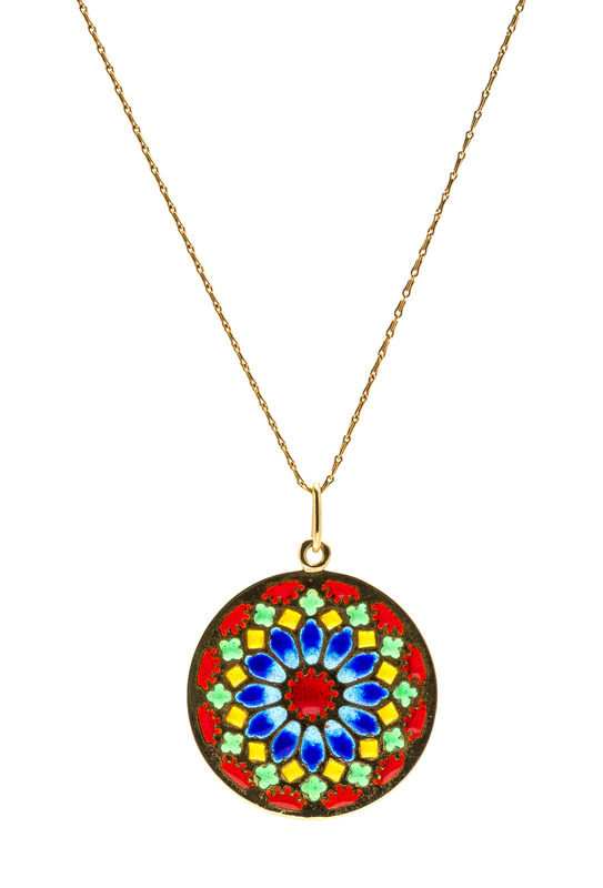 An 18 Karat Yellow Gold and Polychrome Enamel Plique-a-Jour Pendant,