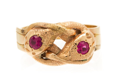 A Rose Gold and Ruby Double Snake Ring,