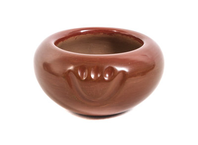a redware bowl with single bear paw impression, signed Nathan Youngblood.