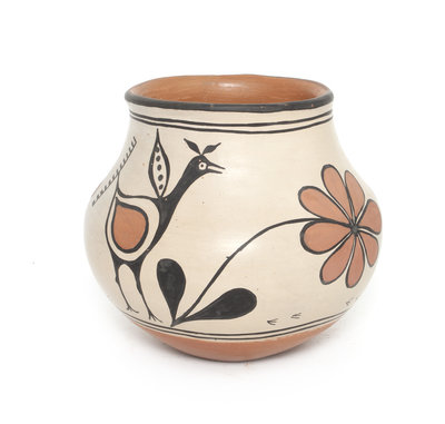 a vase with polychrome floral and bird decoration, signed Santana Melchor Santo Domingo.