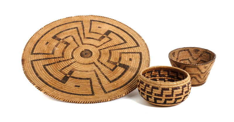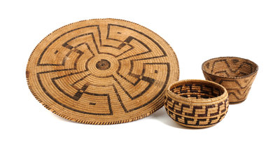 including one tray with whirl wind design and a tapered cylinder basket; together with a Mission basket.